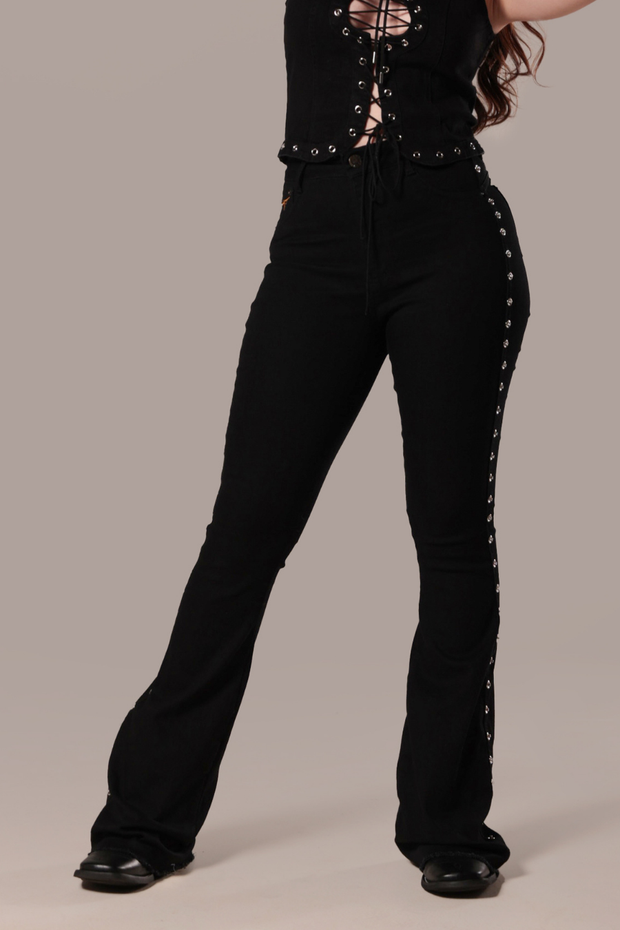 Calça Jeans Preta Rivet Country Texas Ranch Jeans Moda Country Lançamento Exclusivo Country Sessions Cintura Alta Modeladora.