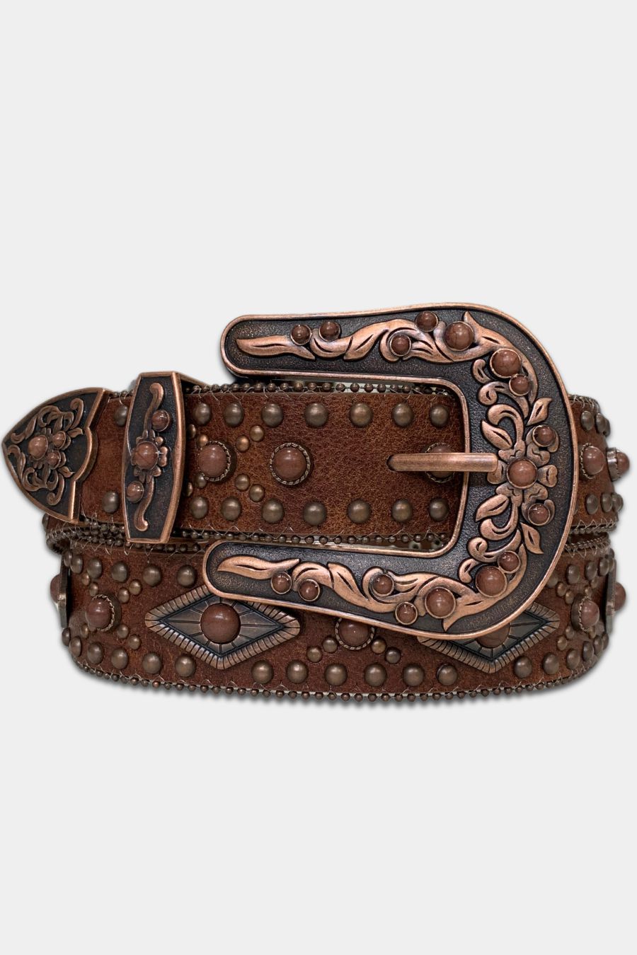 - Possui rebites e pedras ao longo de todo o cinto, na cor marrom, que dão um destaque gigante para a peça;