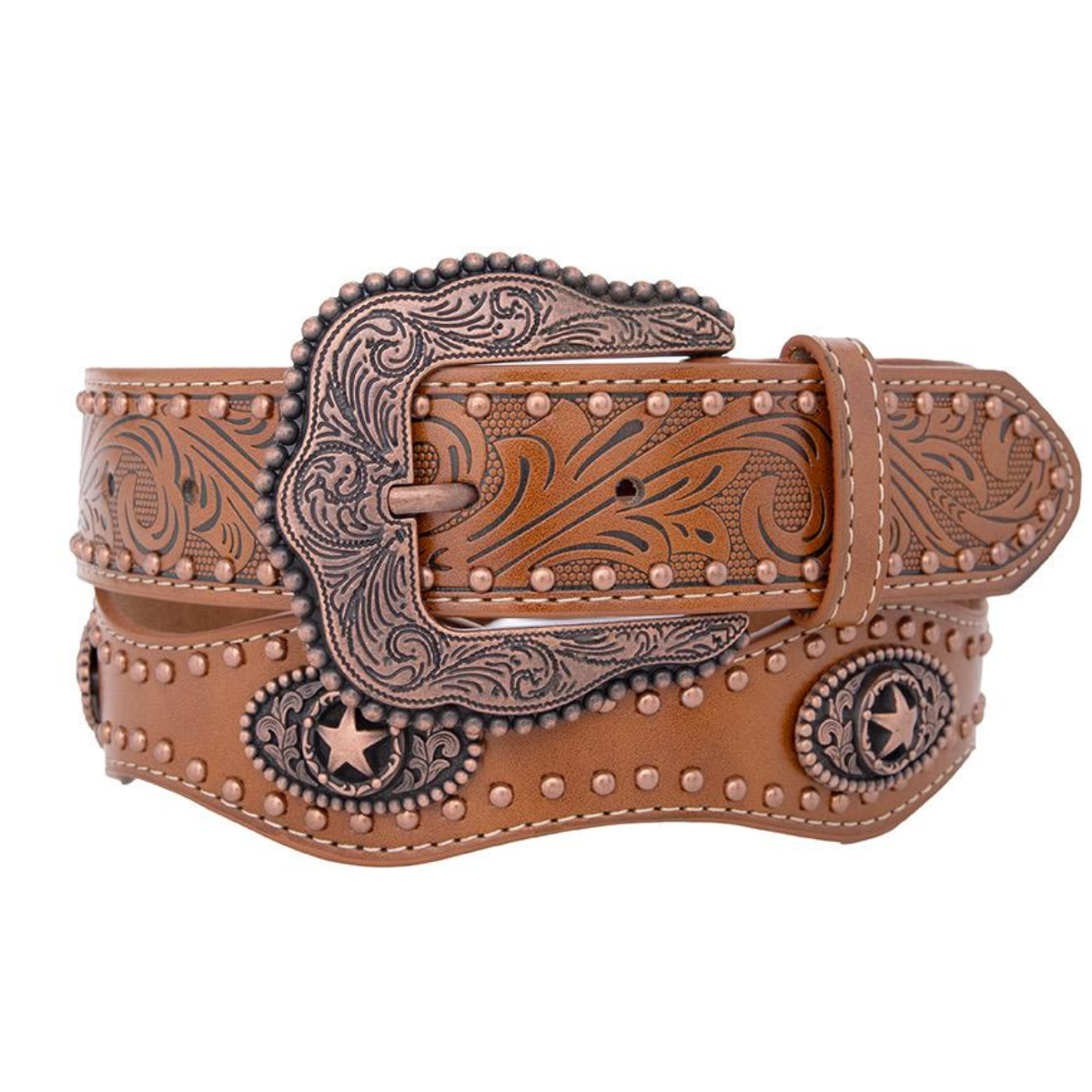 Cinto de Couro Western Star Marrom Claro Moda Country Texas Ranch Jeans Feminino Modelador Qualidade Couro Sintético.