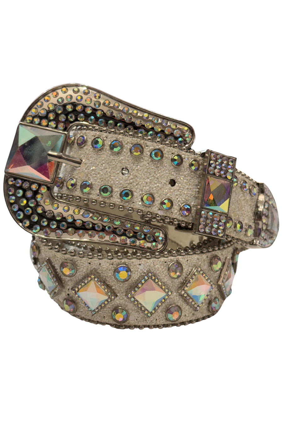 Cinto Moda Country Glitter Branco c/ Pedras Quadradas Texas Ranch Jeans.
